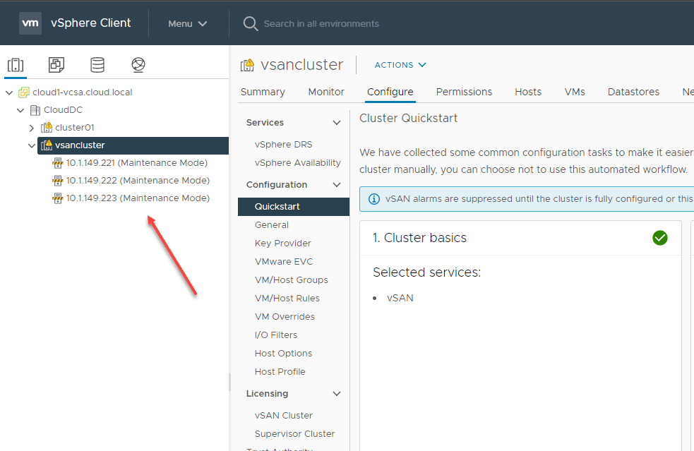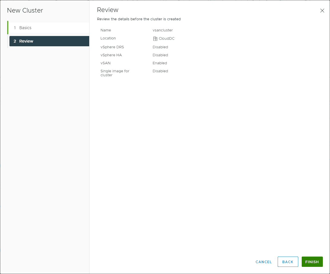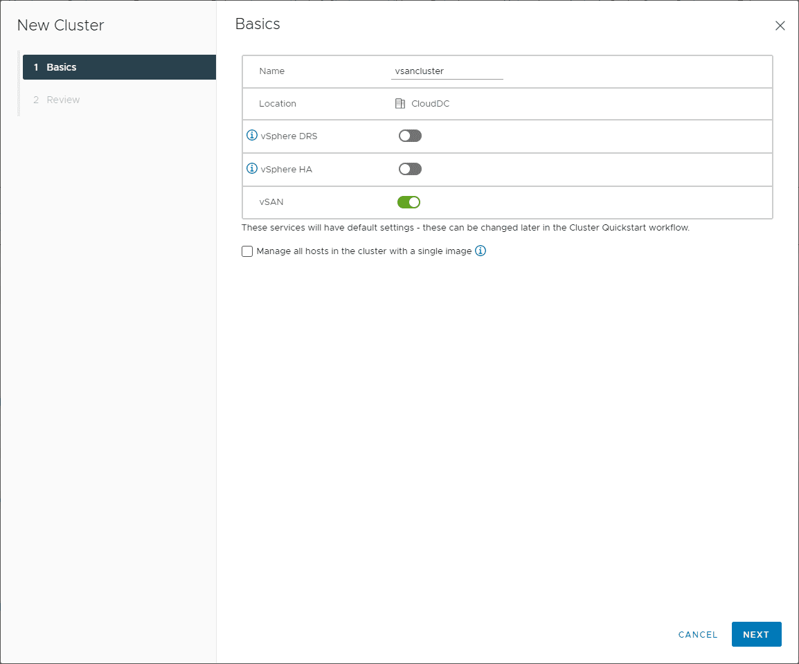 To create a new Cluster, you can right-click your Datacenter and choose New Cluster. This is part of the Quick Start wizard. I went ahead and flagged on vSAN.
