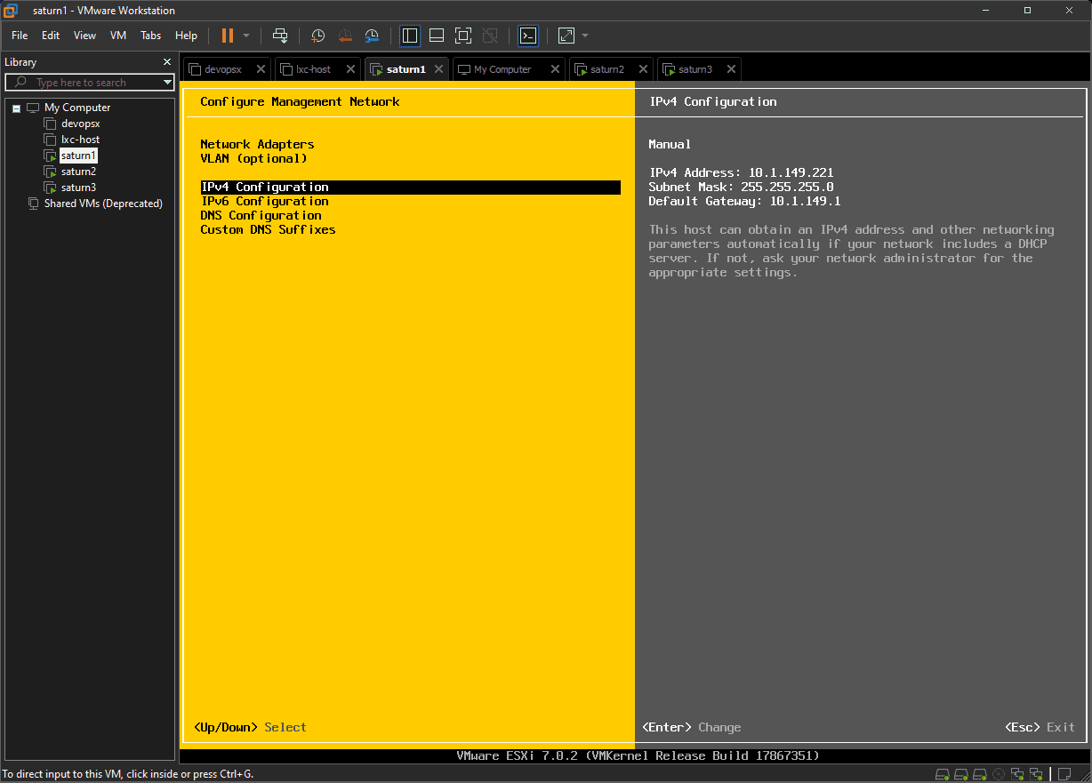 - (1) VMware vCenter Server appliance – In this post, I won’t really detail the configuration of vCenter. You just need to deploy the VCSA either in your VMware Workstation environment or elsewhere that can communicate with the ESXi hosts you will provision in VMware Workstation.