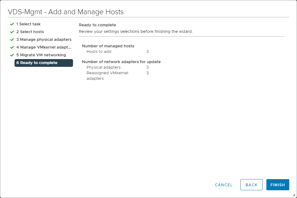 The wizard will claim the disks for all three hosts based on the disks that you select in the previous screen.