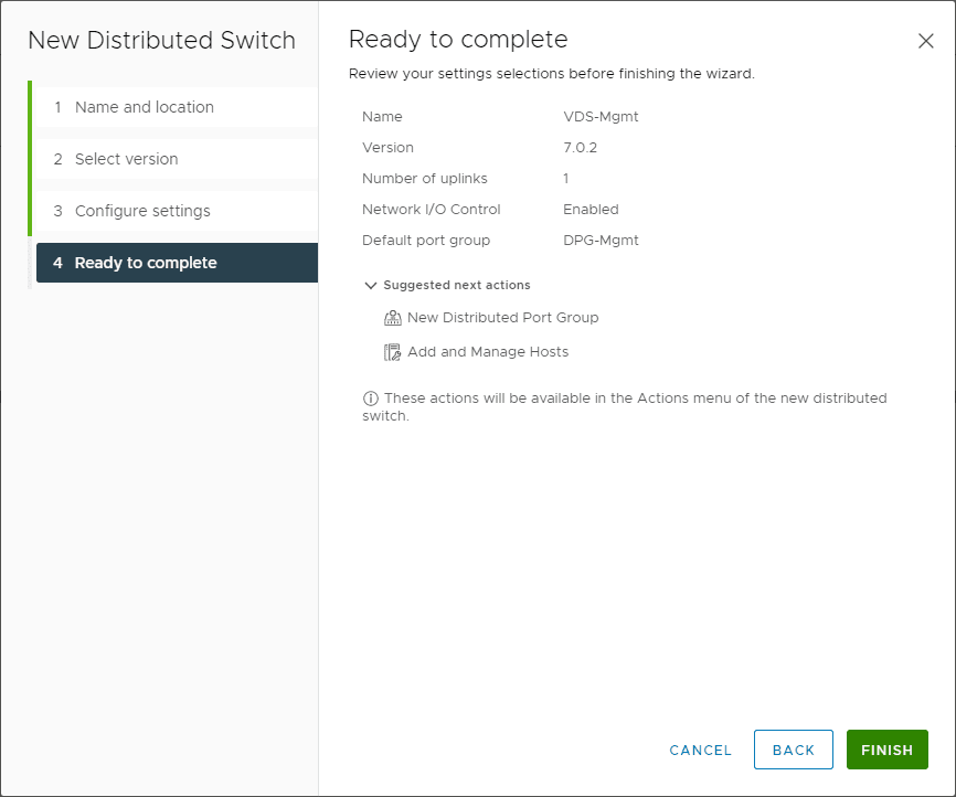 Let’s quickly create two vDS switches, one for management and the other one for vSAN. Basically, we will run through creating both. I will show the process for one of the switches.