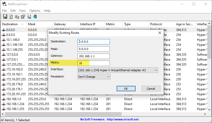 Adjusting Route Metrics in Windows 10 after changing adapter order