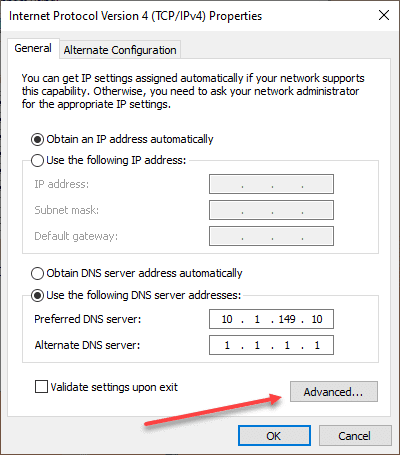 First, let’s see where the metric value is located in the Advanced TCP/IP settings.
