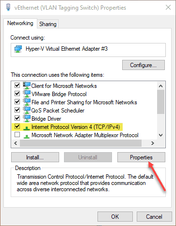 It is not a setting that is readily obvious for most when looking at the properties of your network connections, however, there is a metric checkbox found in the Advanced TCP/IP settings. Navigate to the properties of your network connection that you want to start with. Click to highlight Internet Protocol Version 4 (TCP/IPv4) and then click the Properties button.