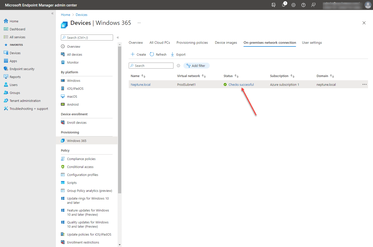 Once you have configured your on-premises network connection, you will need to ensure the checks are successful.