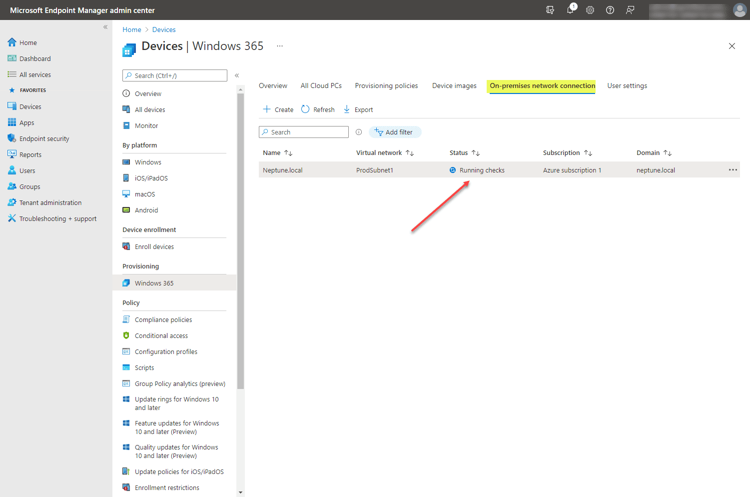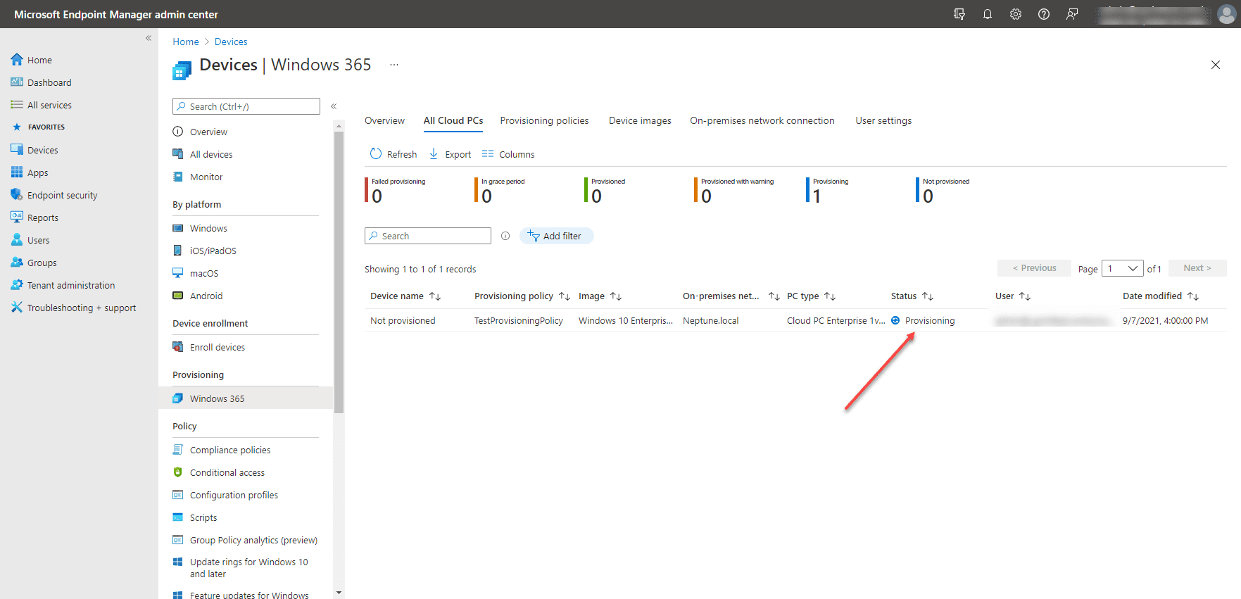 After you create the provisioning policy, you will see the status of the available Cloud PC change to Provisioning under the All Cloud PCs tab.