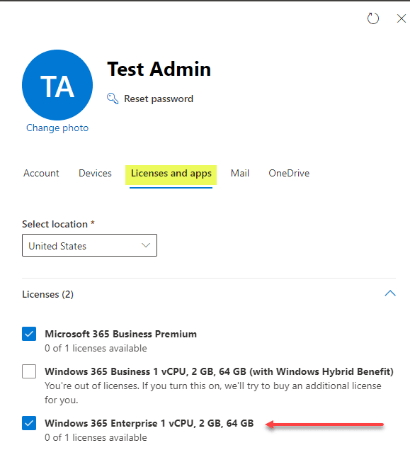 - Add the Enterprise Cloud PC license to the user