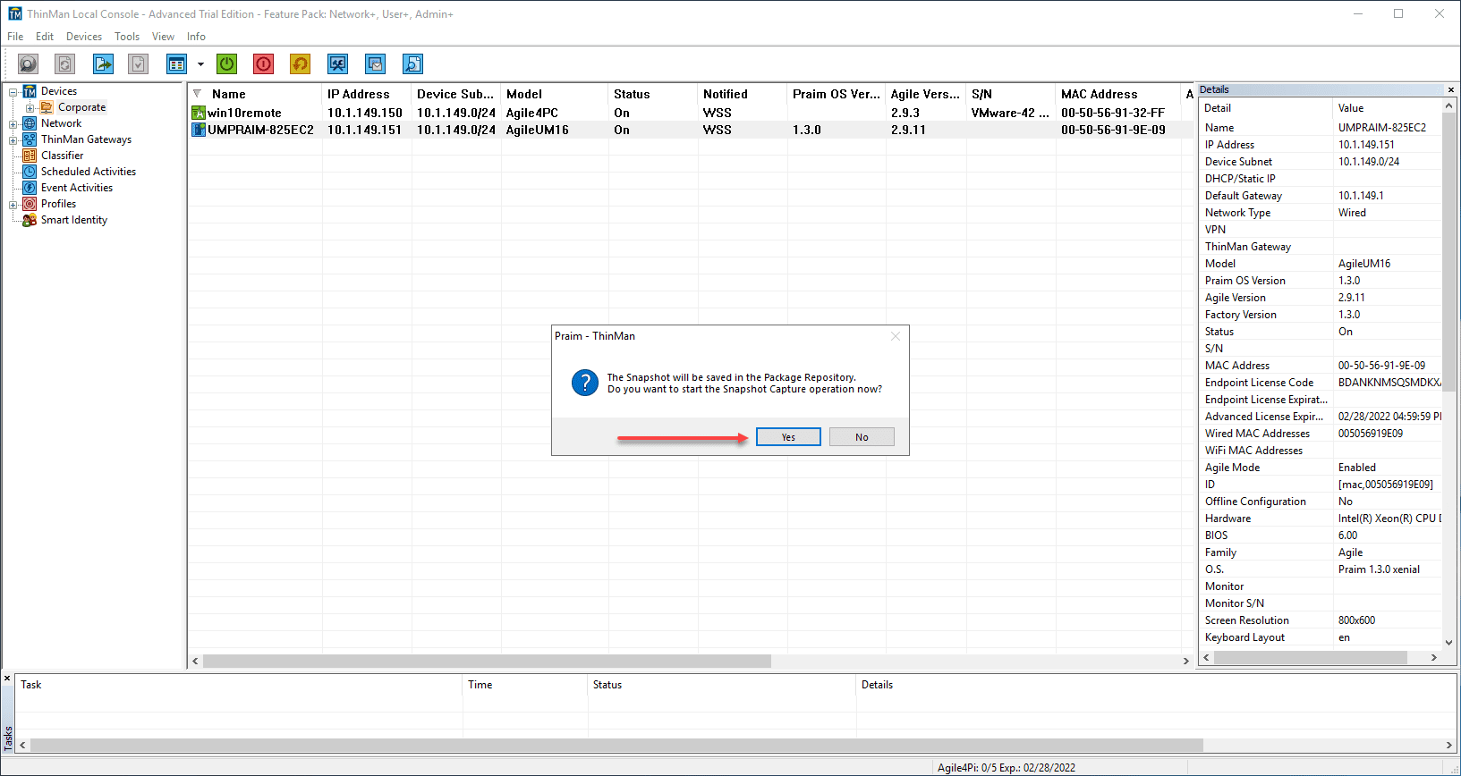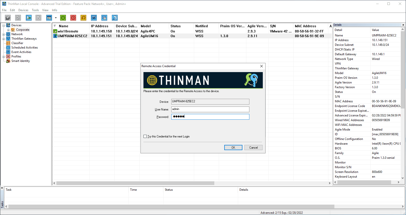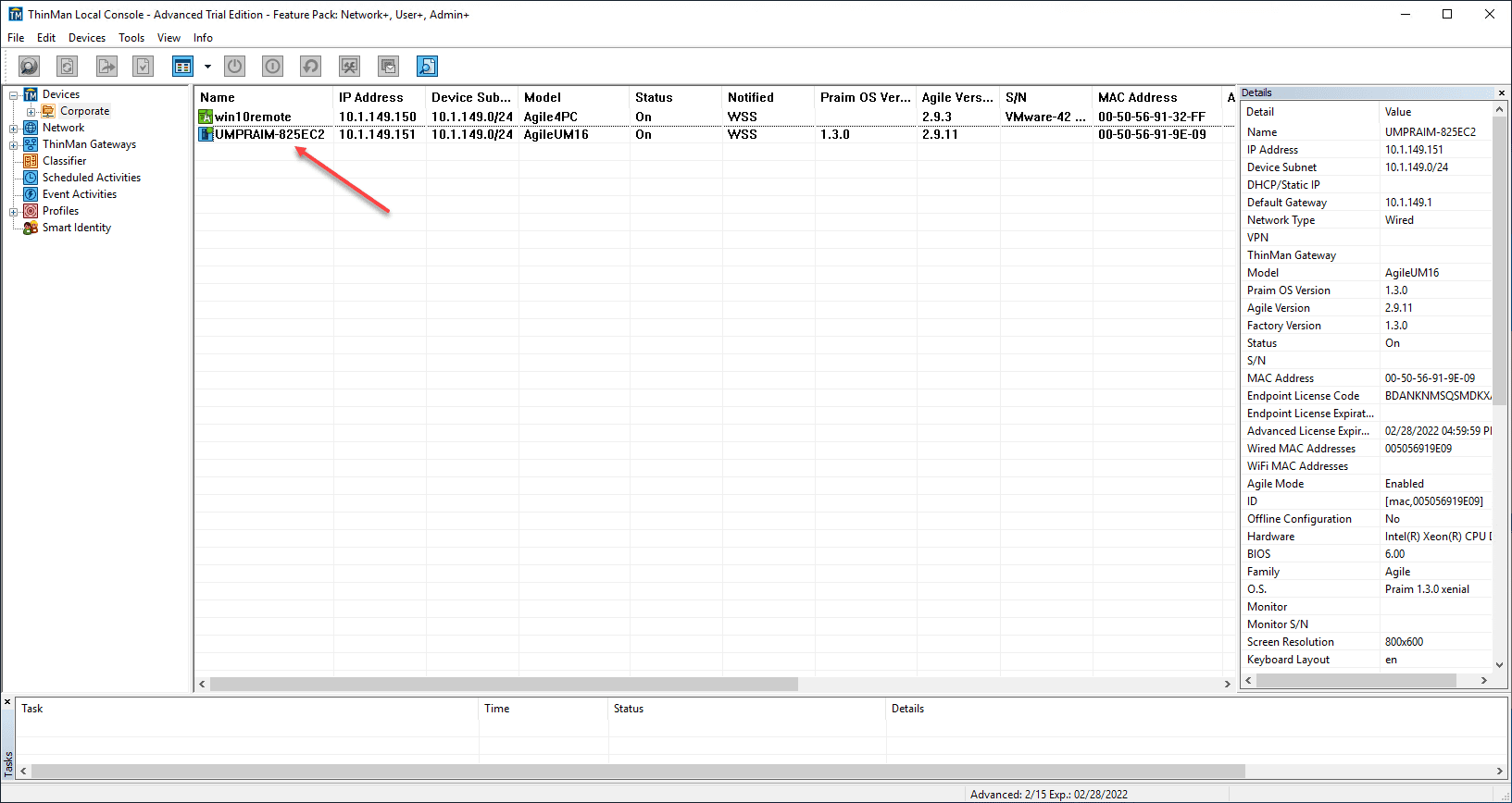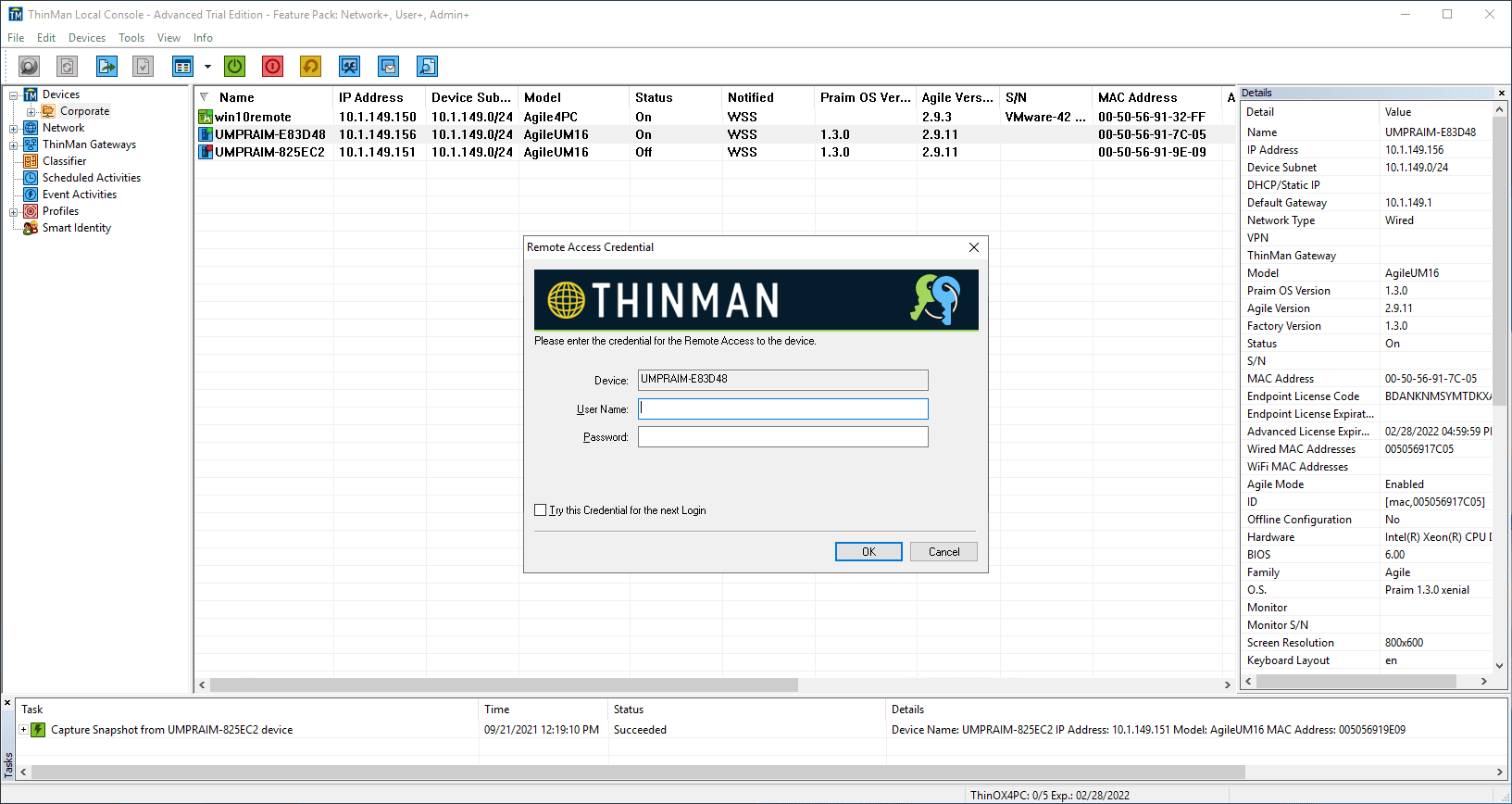 Below, the remote Linux thin client running Agile4Linux is now added to ThinMan Server and able to be managed.