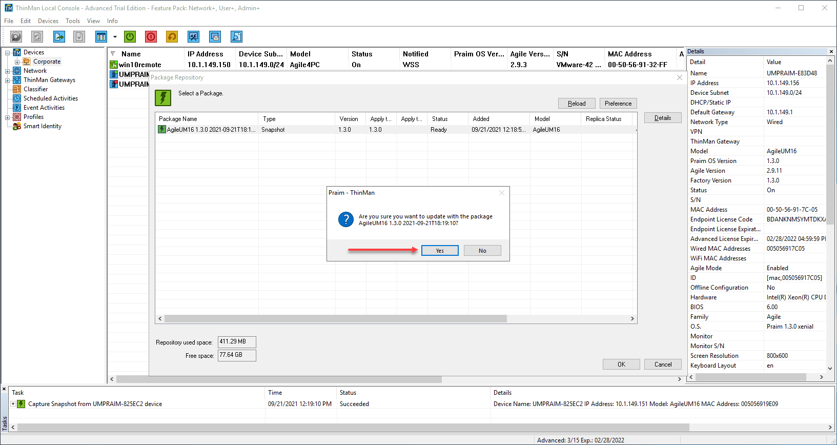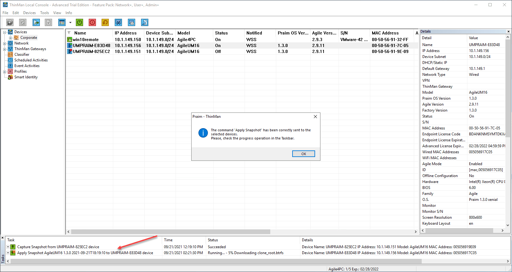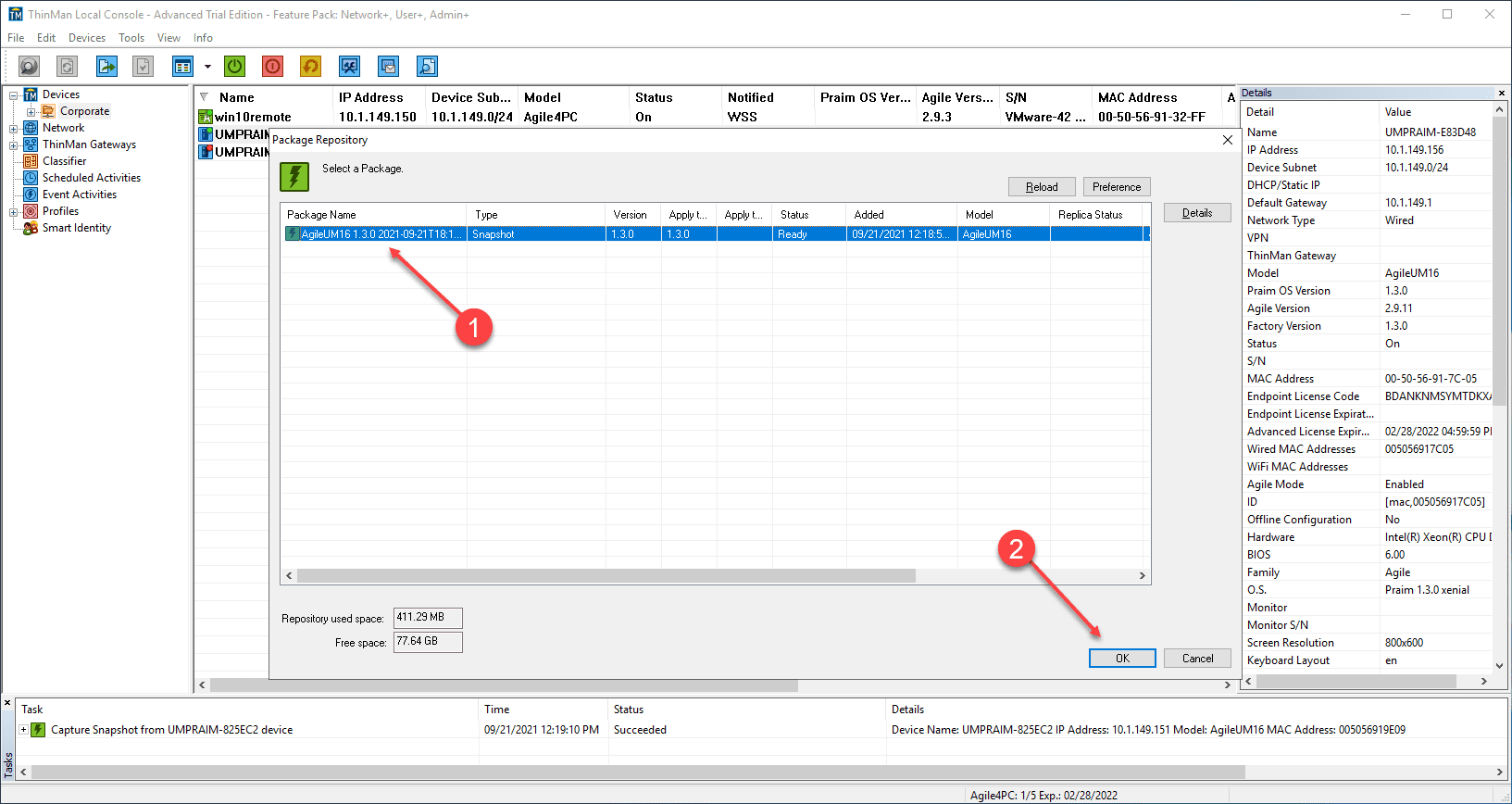 Select the Snapshot from the ThinMan Repository and click OK.