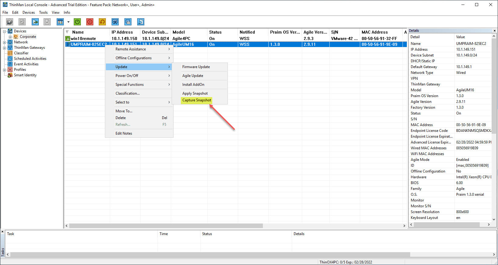 Now that we have the software installed that we want, right-click the device, click Update > Capture Snapshot.