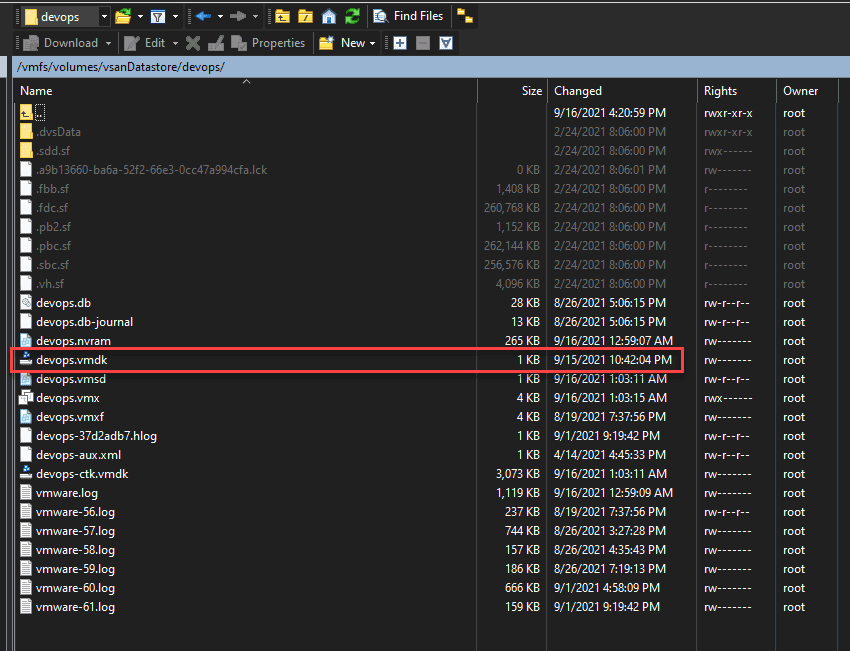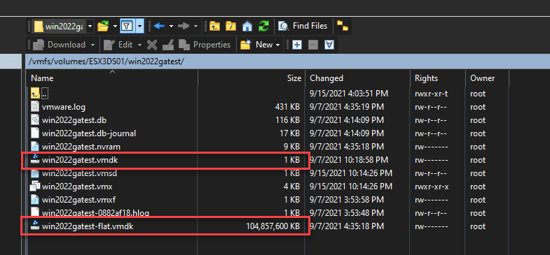 Notice the view of the machine I want to move from the vsanDatastore. You see the VMDK descriptor file but no flat VMDK. I have all files shown in WinSCP and hidden files, so this is not just a view issue. Compare the screenshots below. Both environments are running vSphere 7.0 Update 2 with the latest patches at the time of writing.