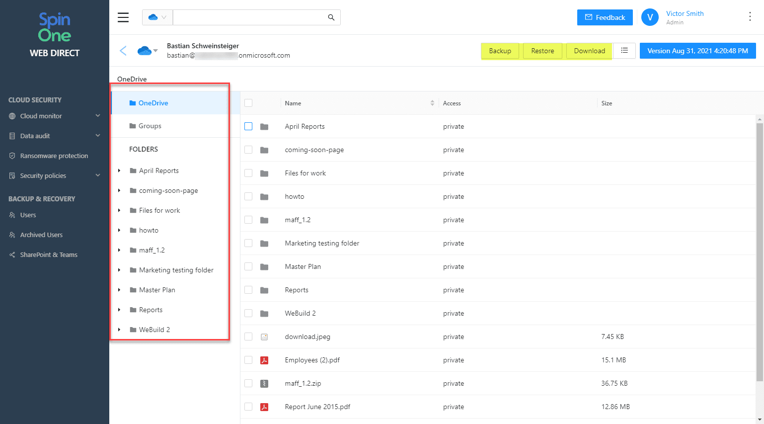 With the new feature, cloud administrators can browse the folder structure of user’s OneDrives. This helps to locate and restore information.ย This new feature leads to simplified operations, quicker restores, and less downtime.ย