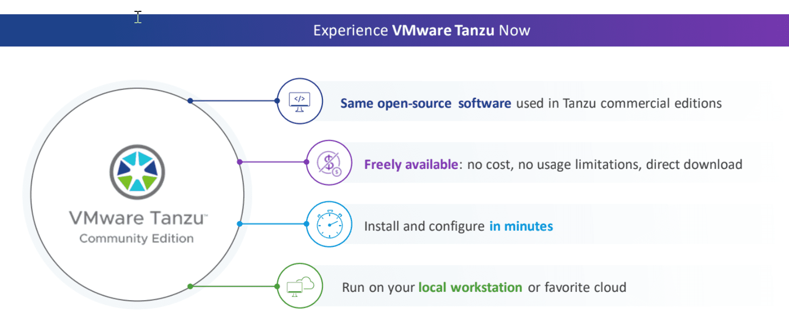 - Learn and explore VMware Tanzu – VMware Tanzu Community Edition will be freely accessible for allowing ones to learn Kubernetes on the Tanzu platform, providing learners with the top-notch VMware tools. It is also community supported as mentioned. This helps learners to have the support of community experts.