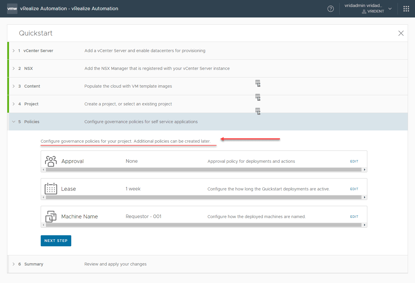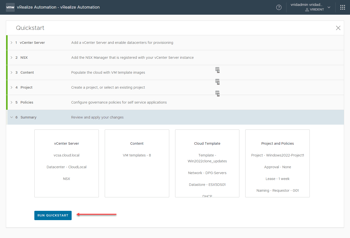 For testing and lab purposes, you can easily use the vRealize Automation Quickstart wizard to quickly spin up a new project that provisions a virtual machine.