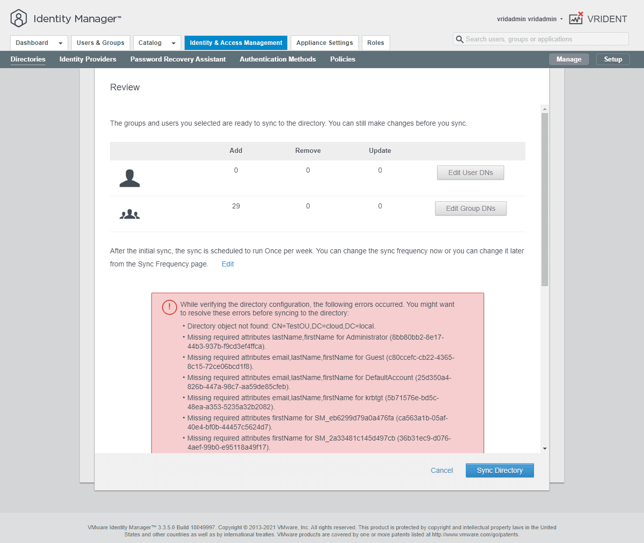 After resolving any missing attributes for users you want to import, run the synchronization process.