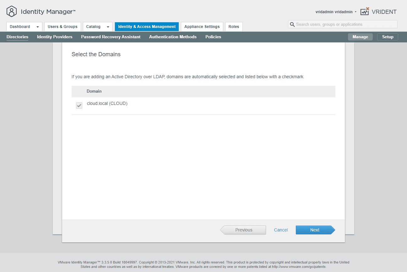 In most environments in the enterprise, Active Directory is the directory service most are using for IAM to resources. Active Directory users are most likely the users you will want to assign to vRealize Automation self-service workflows. To add Active Directory users to your environment and allow them to log into vRealize Automation, we need to add the Active Directory directory service to VMware Identity Manager.