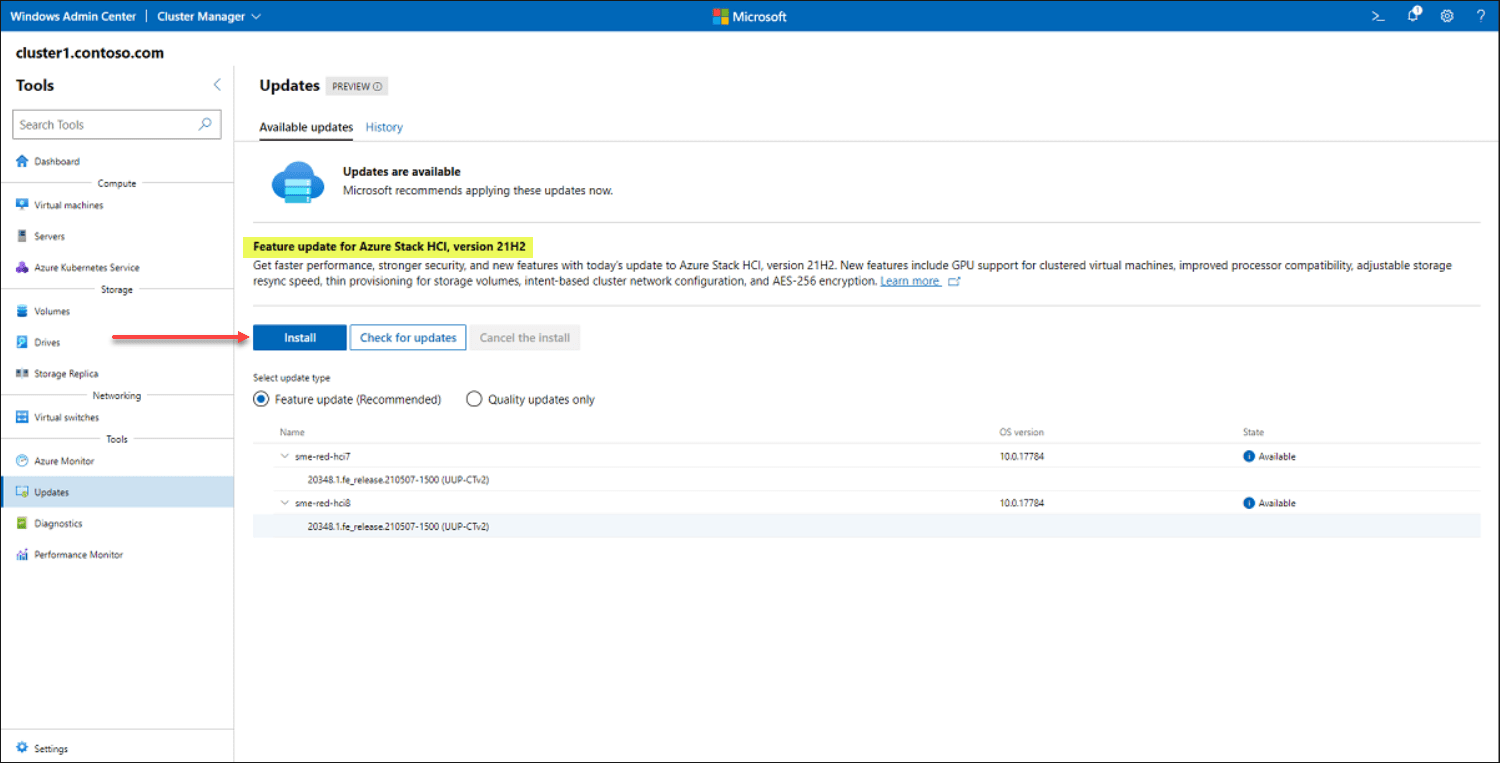 If your cluster is still running Azure Stack HCI, version 20H2, be sure to apply the latest Feature updates before joining the preview channel. See Update Azure Stack HCI clusters.