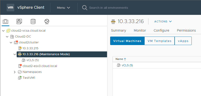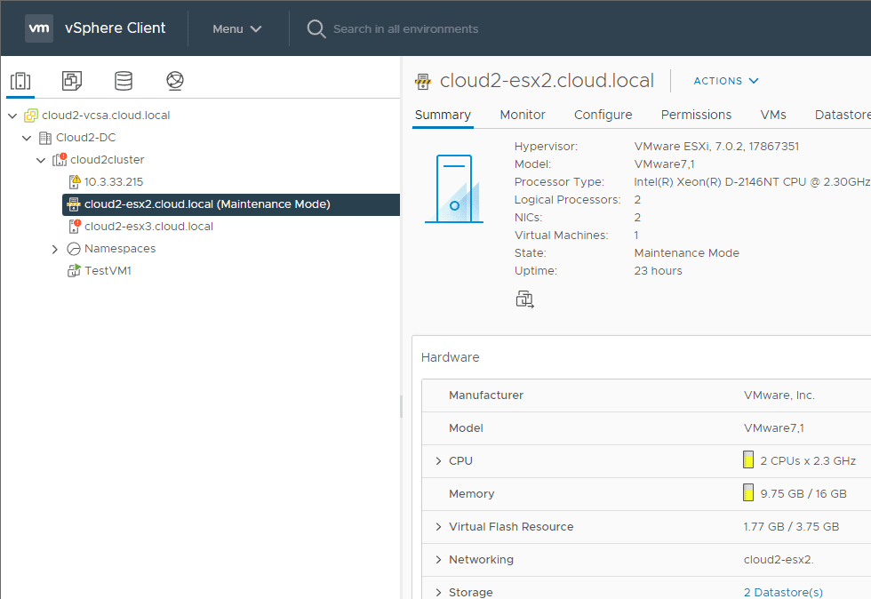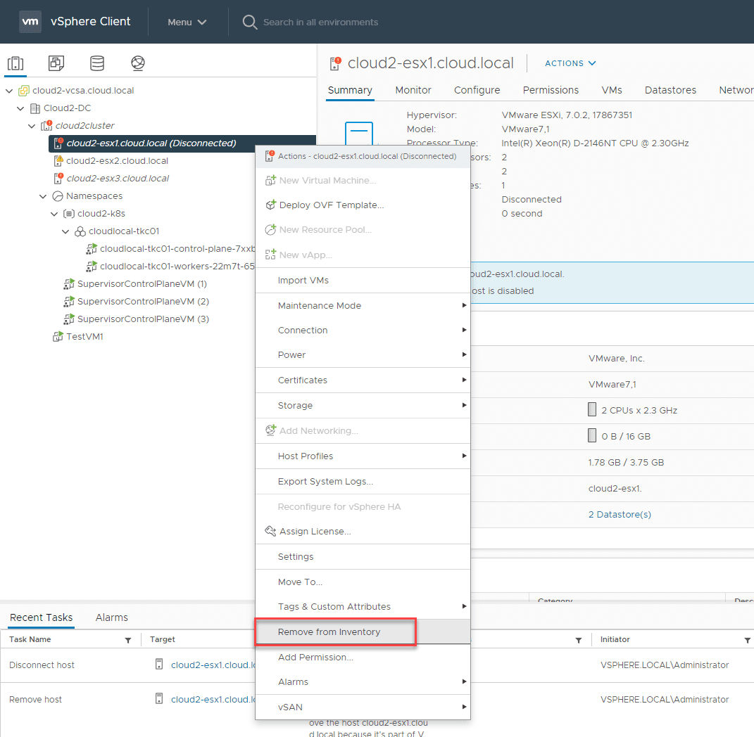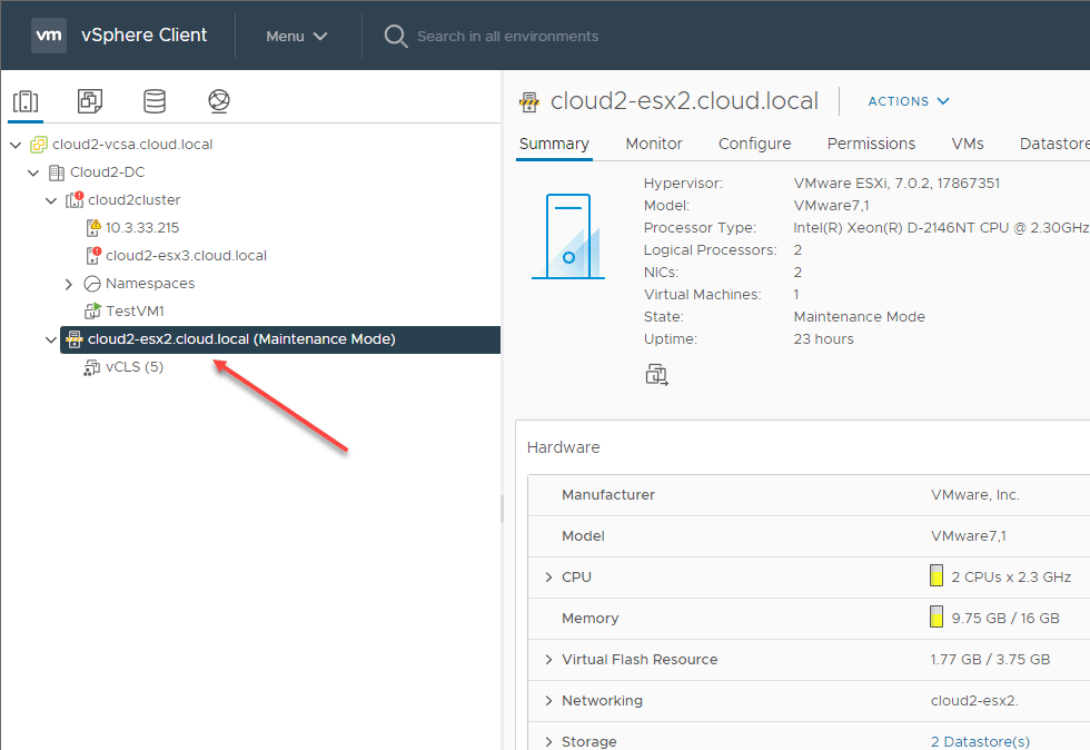The VMware ESXi vSAN host is placed in maintenance mode with all the workloads migrated off.
