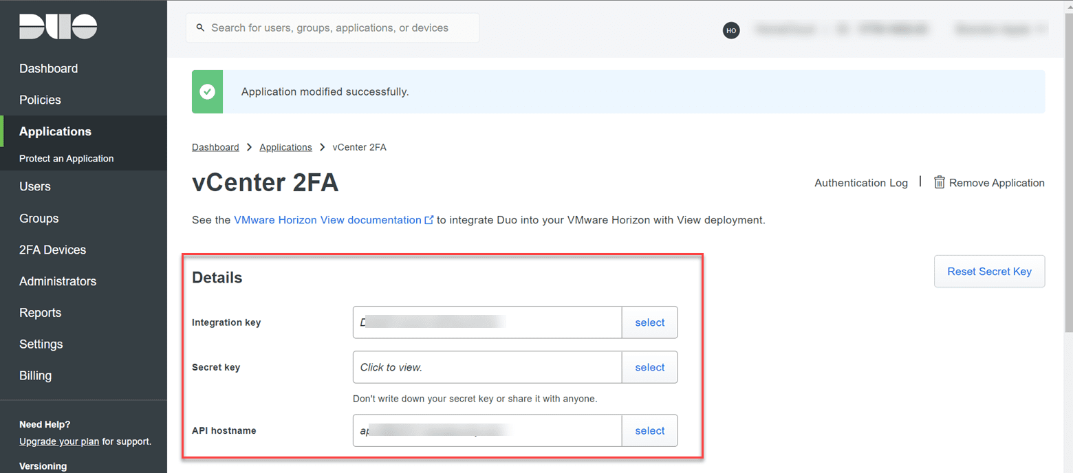 To do this, we will use a simple protected application using Duo Security. You can sign up for a free Duo account and create a protected application to protect your vCenter Server. The steps to implement two-factor for your vCenter Server include the following: