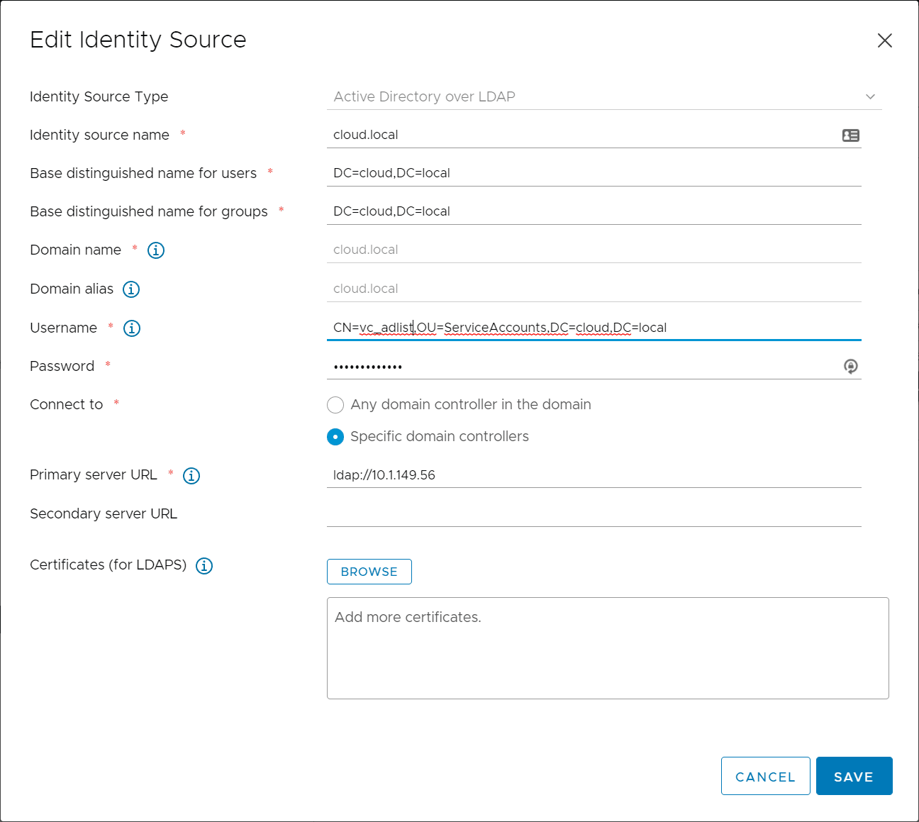 4. Point vCenter Server LDAP connection to the Duo proxy