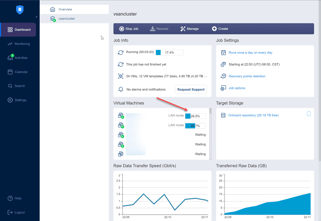 I clicked Finish & Run, so the job kicks off. I was able to get great throughput on the backup job from the vSphere environment during the overall process.