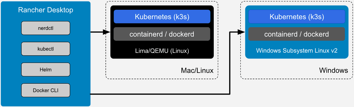The Rancher Desktop application is based on Electron. It runs the solution as a VM in macOS and Linux and uses Windows Subsystem for Linux 2 (WSL2) for running on Windows. What’s more, you simply download the application and run it. Rancher Desktop uses the specialized Rancher K3s distribution. What is this?