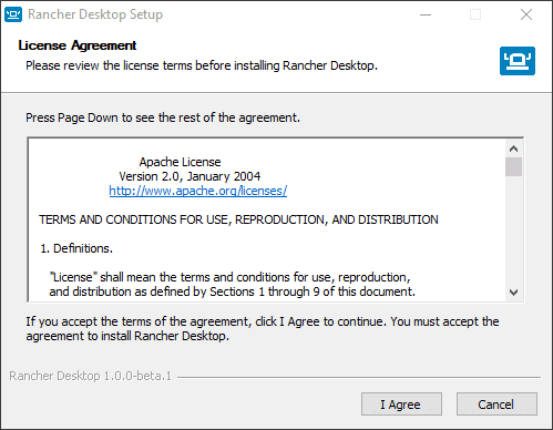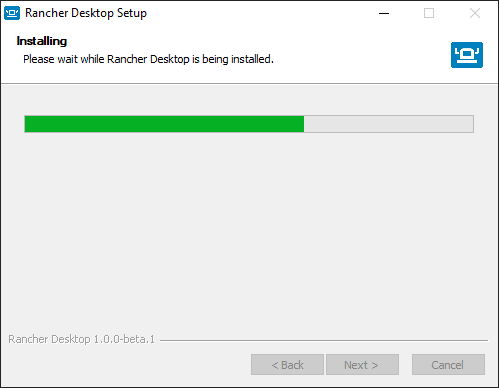 Since my administrative workstation is Windows, I will be downloading and installing the Windows version of Rancher Desktop v1.0.0 beta. As you can see from the screenshot above, the size is small at 254 MB. After downloading the Rancher Desktop installation, simply run the .exe and next through the prompts (only 2 screens in Windows).