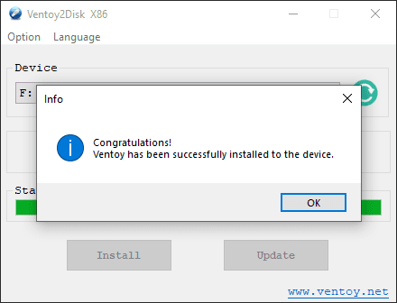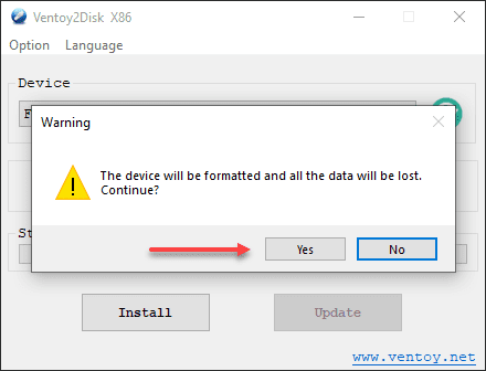 Ventoy will prompt twice to confirm you want to overwrite the disk.