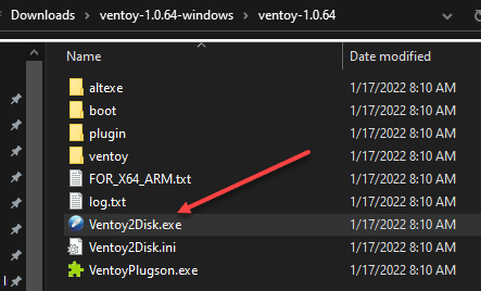 After downloading the Ventoy compressed archive, extract the files to a folder. Then, run the Ventoy2Disk.exe application.