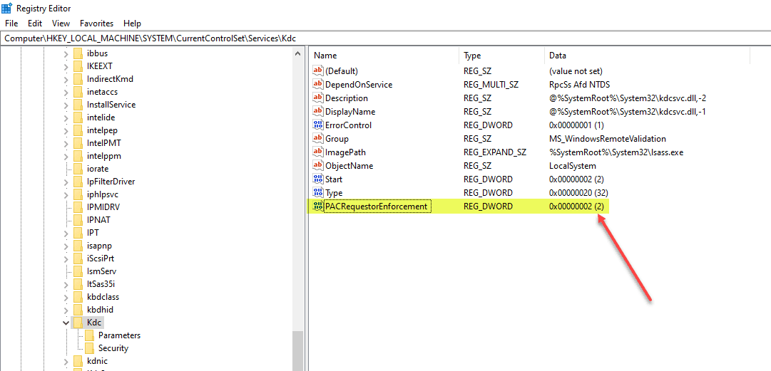HKEY_LOCAL_MACHINE\SYSTEM\CurrentControlSet\Services\Kdc