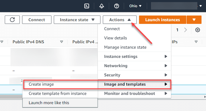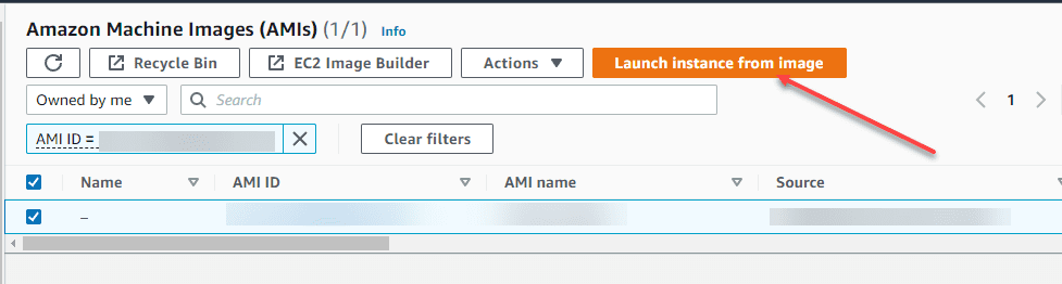 Now that we have a new AMI image, we can select the AMI image and choose Launch instance from image.