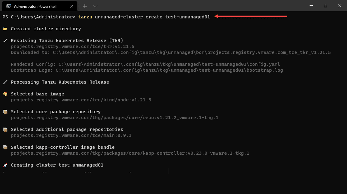 Creating the Tanzu Community Edition (TCE) unmanaged cluster is a straightforward and simple process that only involves a simple command-line command to be ran.