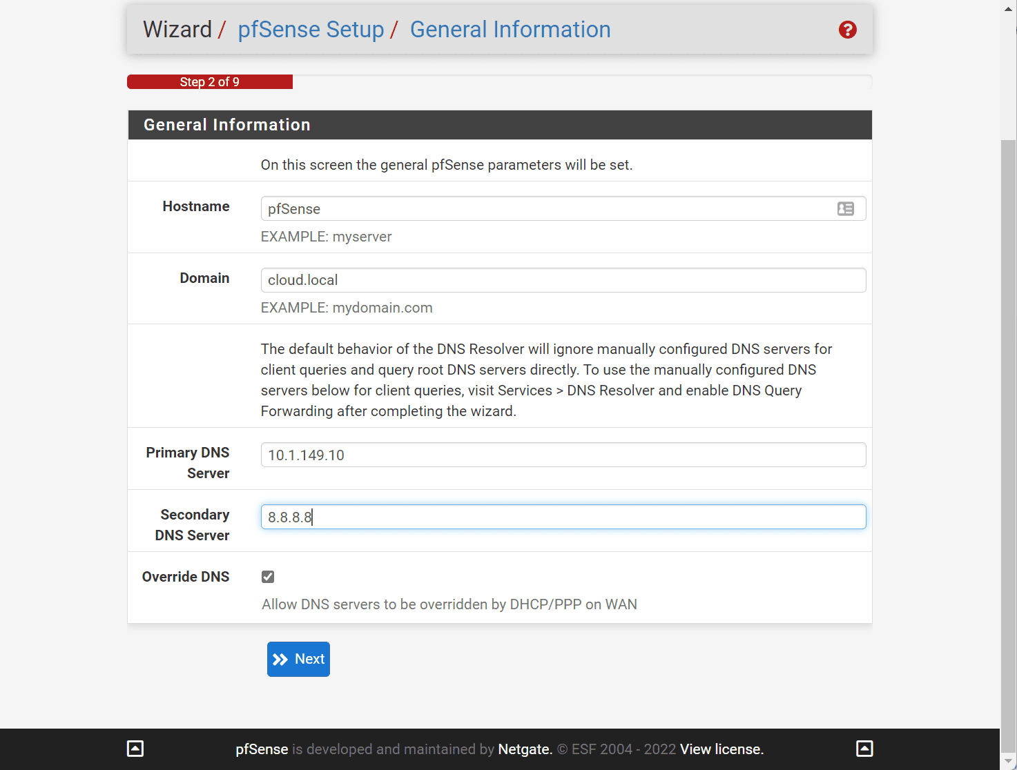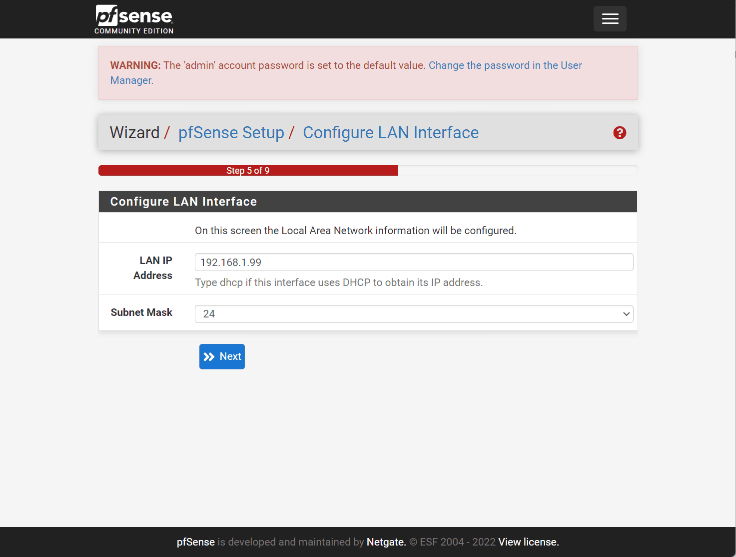 4. Use the WebConfigurator to finish the pfSense VMware configuration