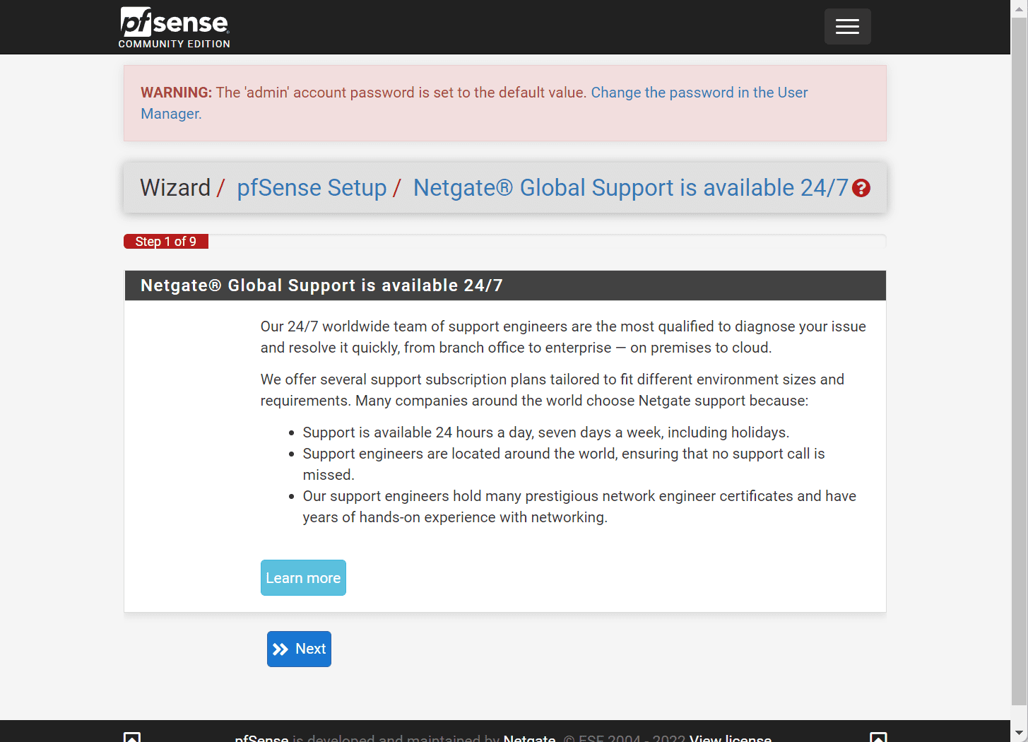 - Use the WebConfigurator to finish the pfSense VMware configuration