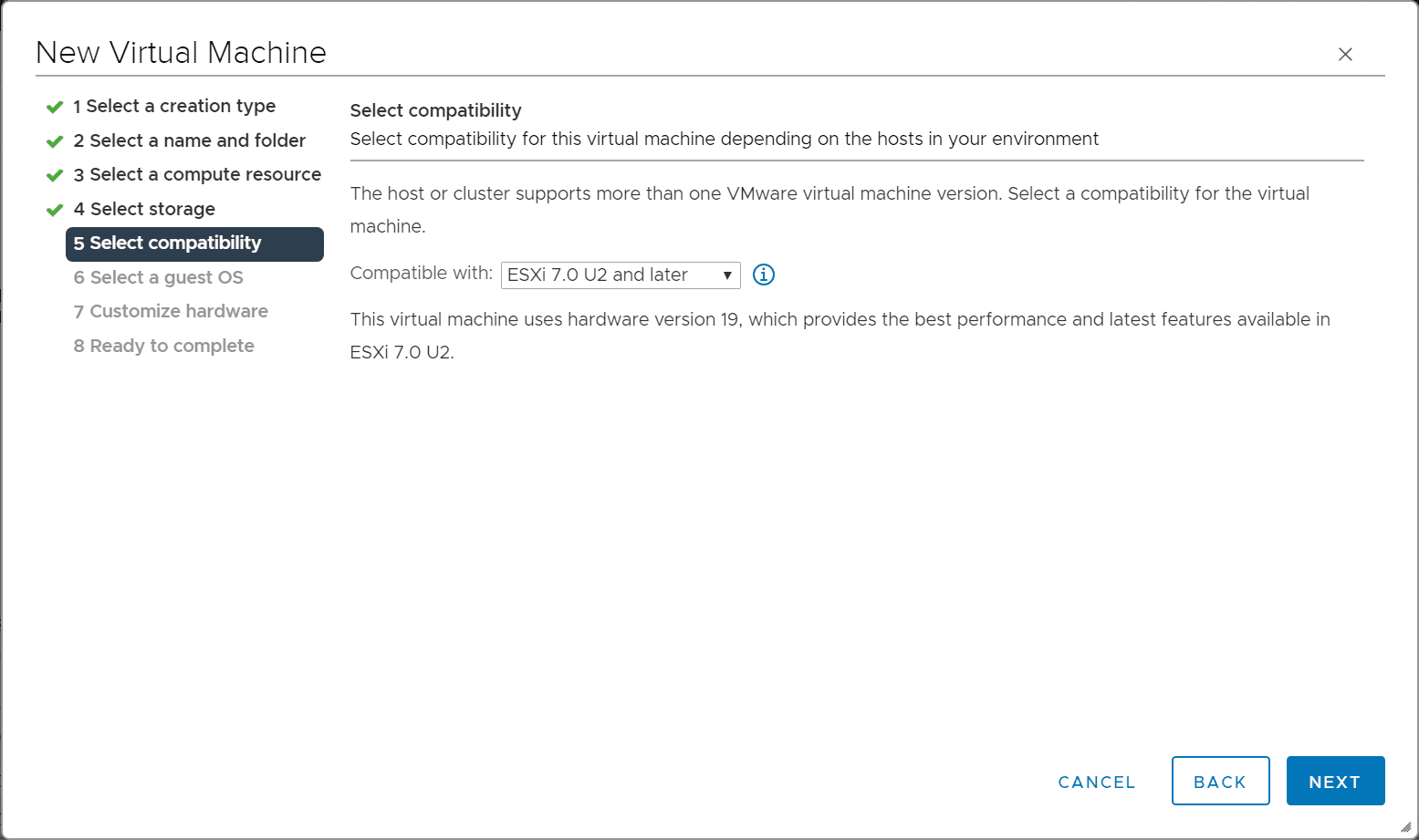 Select the virtual machine compatibility. It is fine to select the default highest version here.