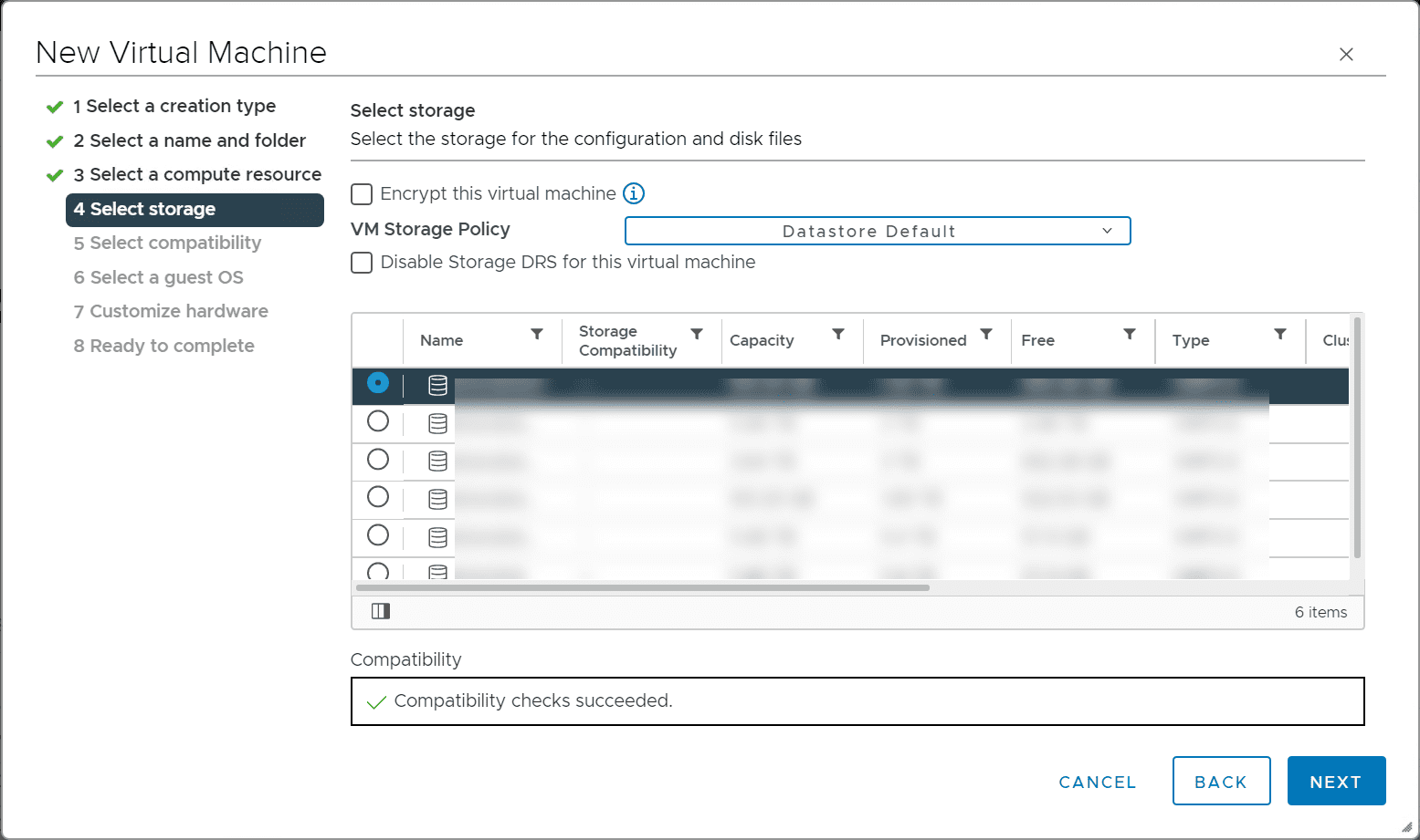 Select the vSphere datastore on which you want to store the pfSense virtual machine.