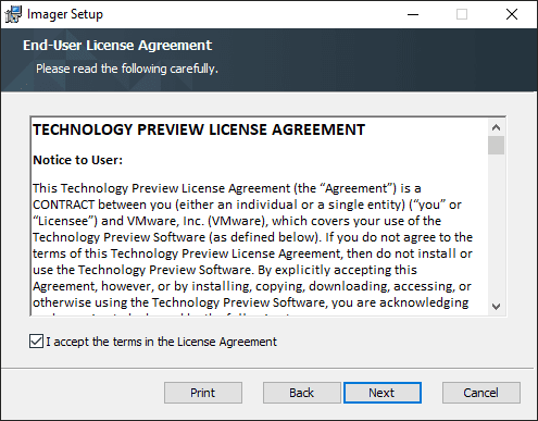 The process to install the new VMware Imager Fling is very straightforward and provides a “next, next, finish” installation process familiar with many easily installed applications. Below are the screenshots from installing the application in my home lab environment.
