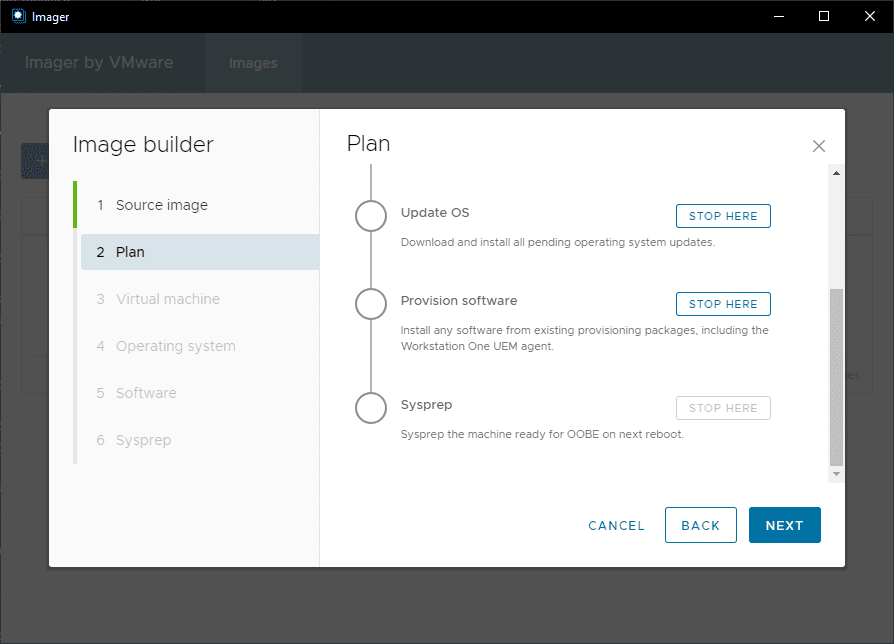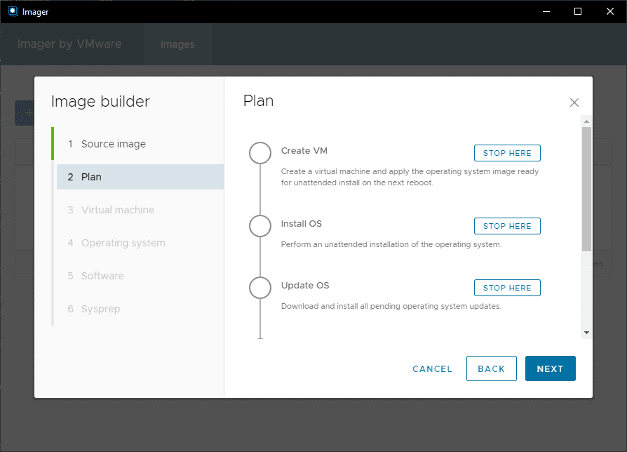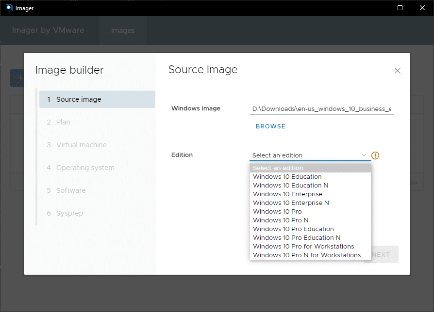 Once you install the Imager Fling, it opens a very familiar-looking tool with the first step being configuring the Source image. On the Source Image screen, you select the following: