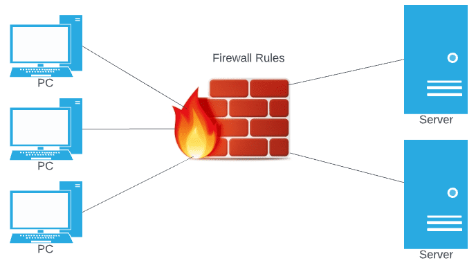 Instead, you want to have something like the following. Below, all traffic between PCs and Servers is scrutinized for various traffic types and network communication and clients and servers exist on different networks.