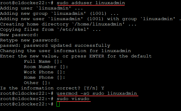 To perform the tasks to get the user configured as mentioned, we need to run the following commands: