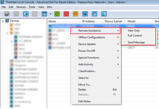 Another advantage of the ThinMan Server solution is the built-in Remote Assistance feature. Typically, organizations may require one solution for management, one for lifecycle operations, and another for remote assistance. ThinMan Server consolidates these crucial tools into the unified native ThinMan Server experience. Helpdesk technicians can highlight the remote device to work on and launch the Remote Assistance option from the interface.