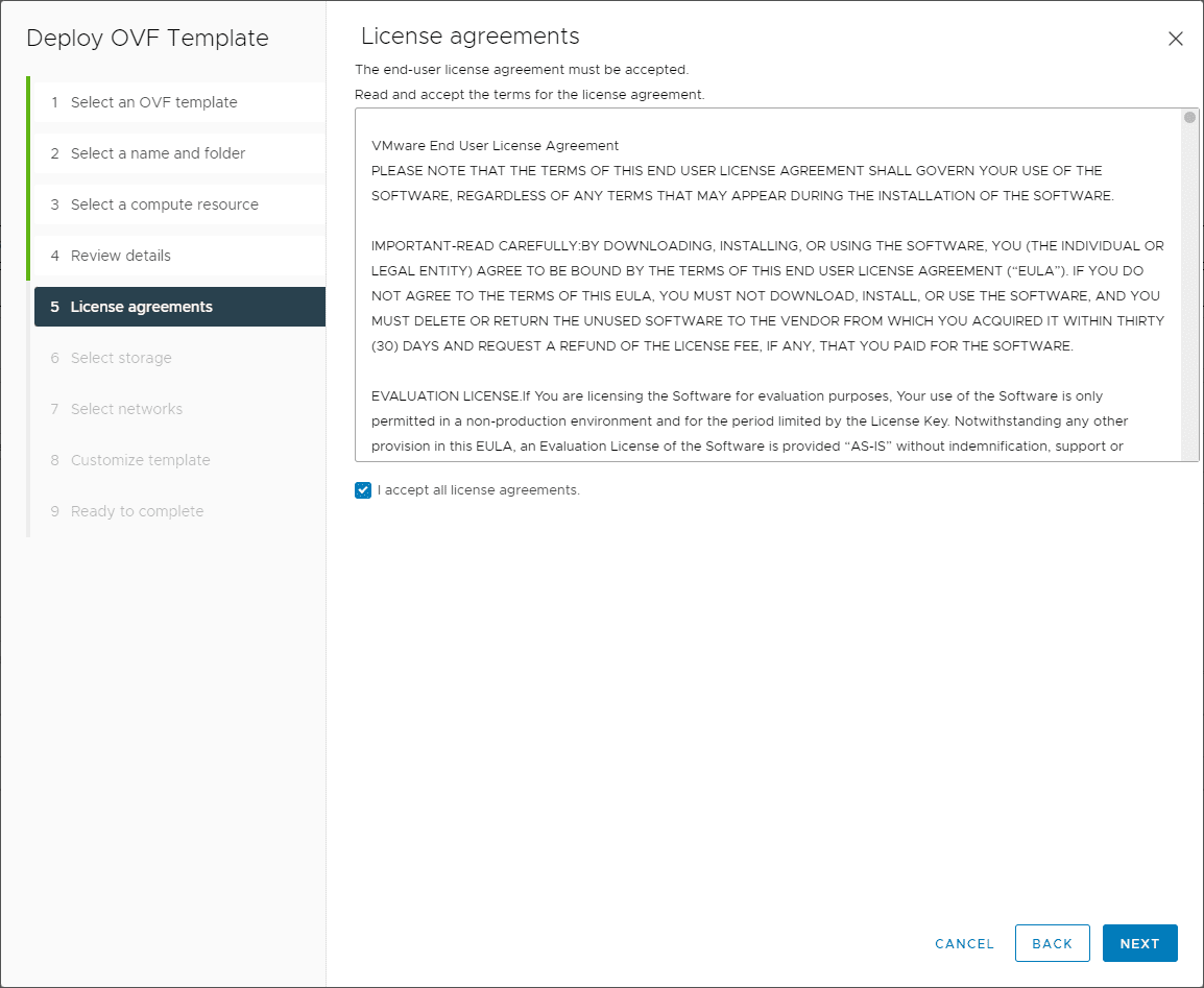 Select the datastore where you want to deploy the VMware HCX appliances.