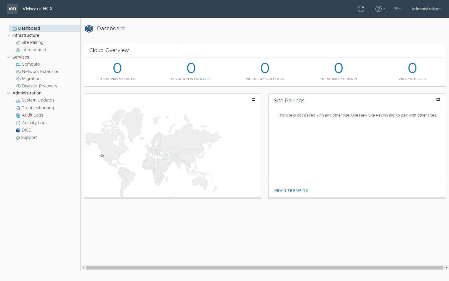 Once you have restarted the appliance. You can log into the VMware HCX dashboard.