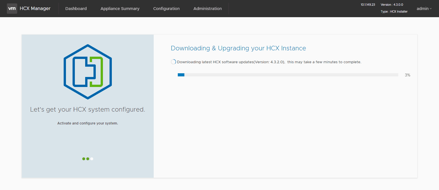 At this point, the VMware HCX appliance will automatically pull updates and reboot.