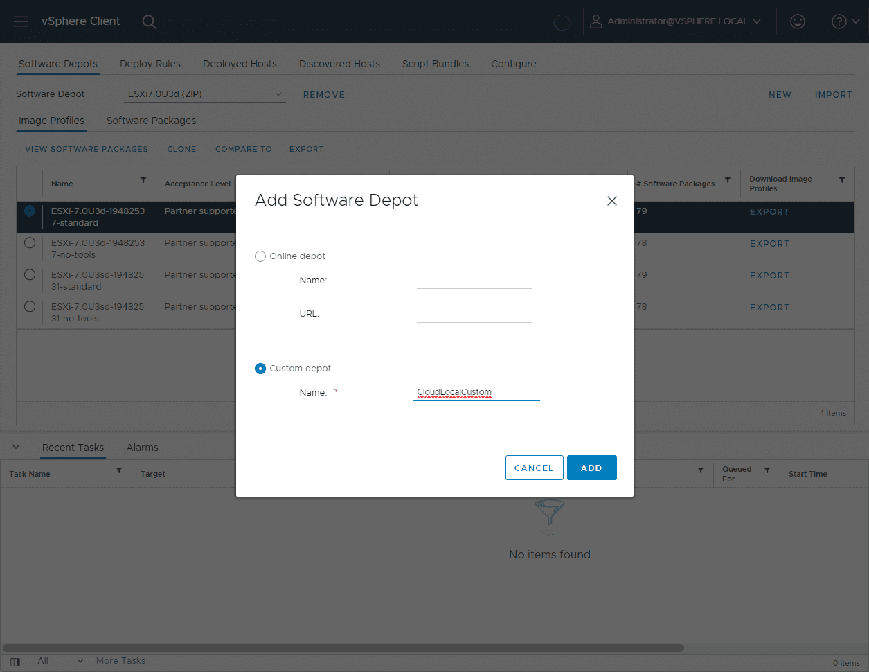 Adding a new Software Depot in Auto Deploy