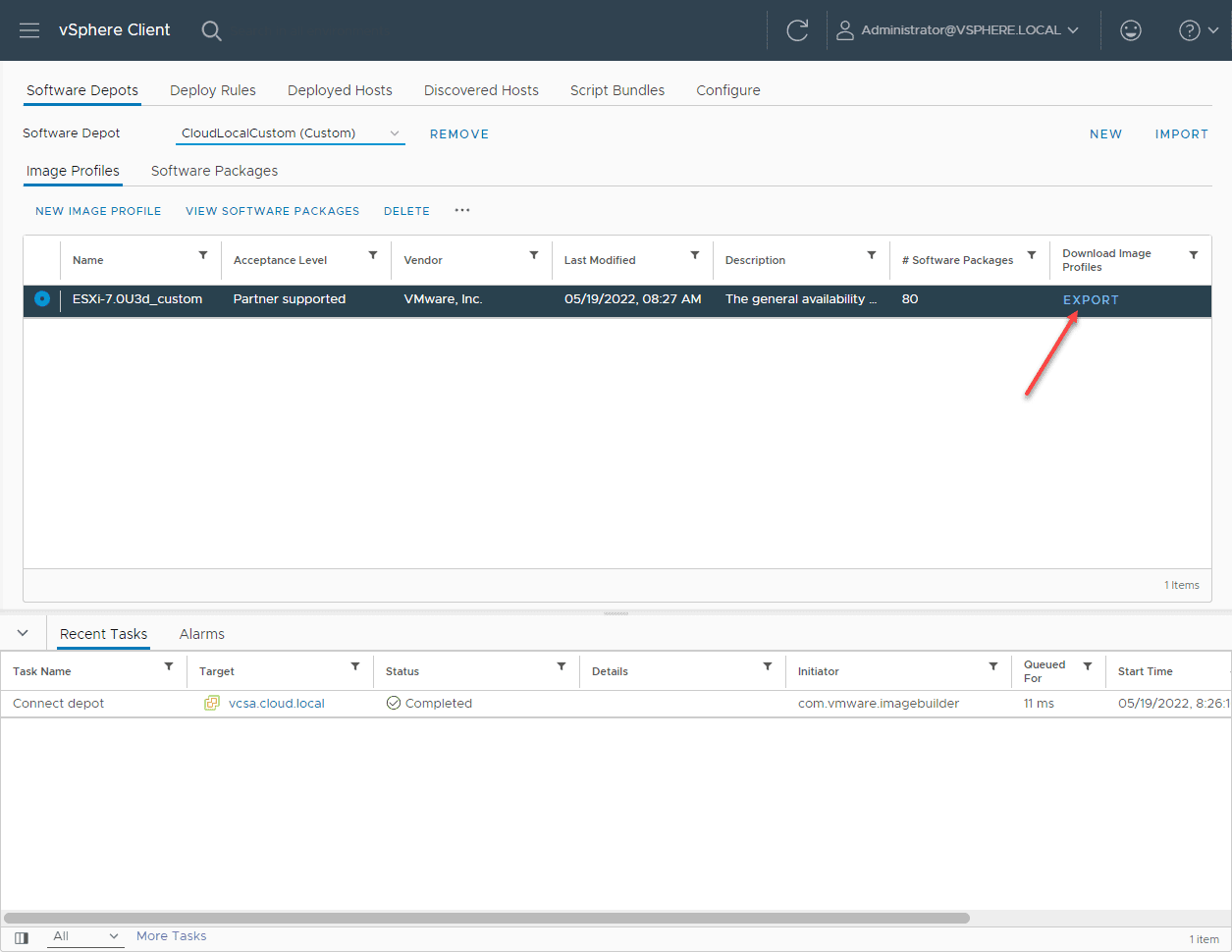 Now, you will be able to Export the resulting customized image containing the additional network drivers.