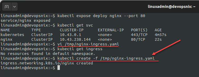 Create the ingress using the command: