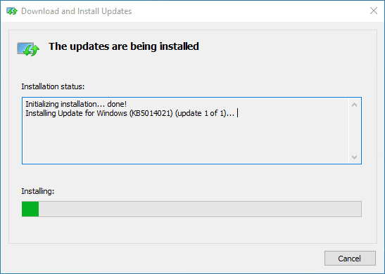 After kicking off the installation, the update will be applied to Windows Server 2022.
