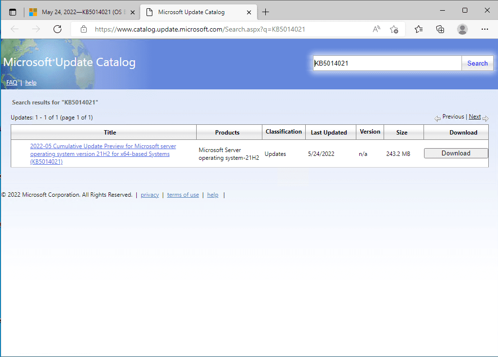 May 24, 2022 – KB5014021 Preview