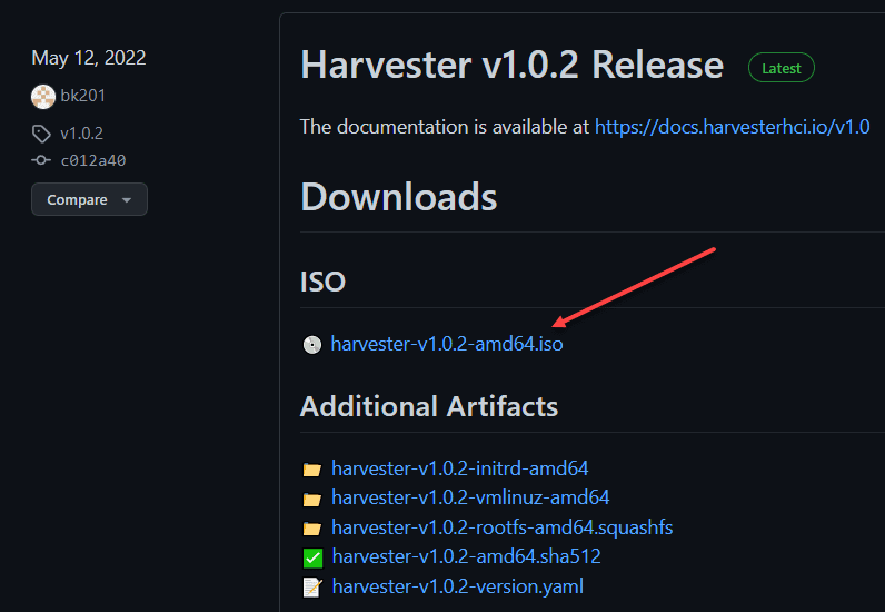 - Mount the Harvester ISO disk and boot the server by selecting the Harvester Installer. iso-install.png