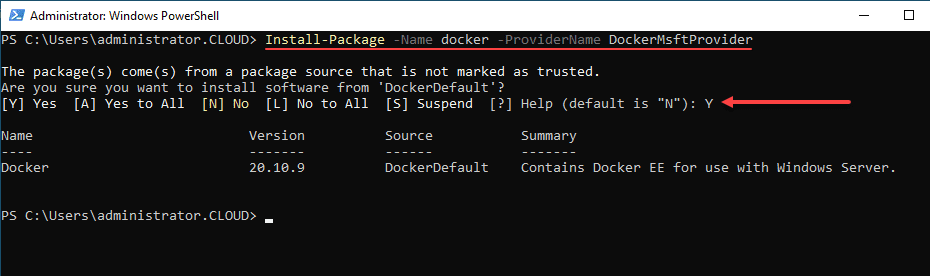 Install-Package -Name docker -ProviderName DockerMsftProvider